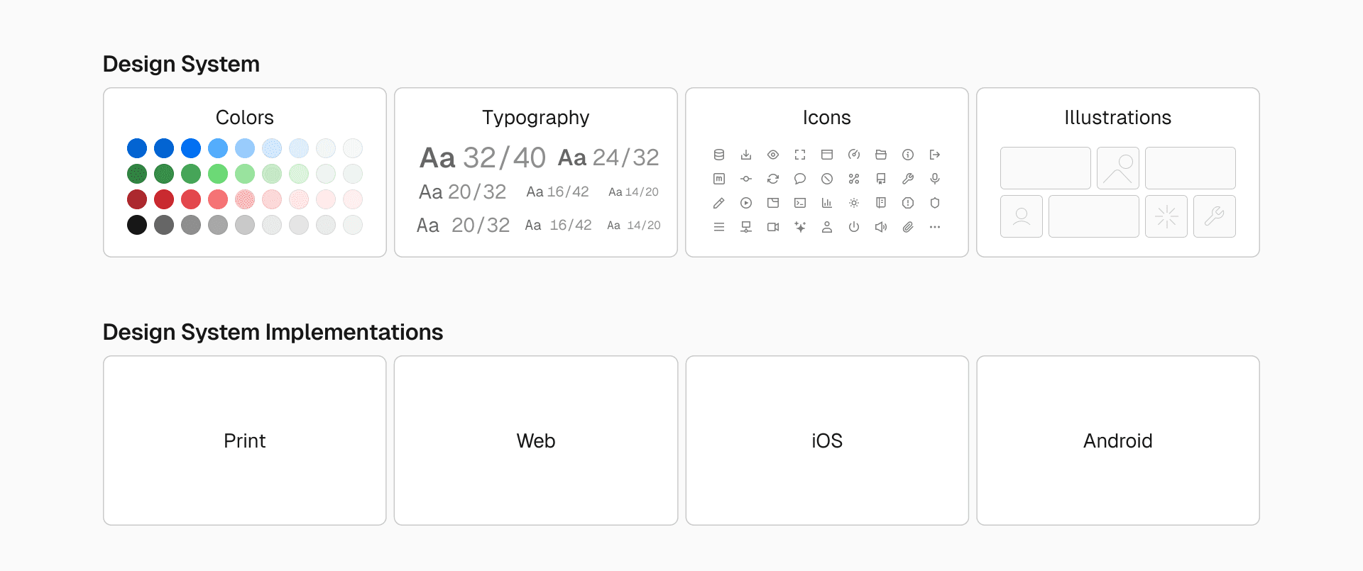 A design system captures this. It defines the visual language of your product through tokens, patterns, and structure. It includes decisions about color, type, spacing, motion, tone, and more. It reflects your brand and guides teams working across apps and platforms.