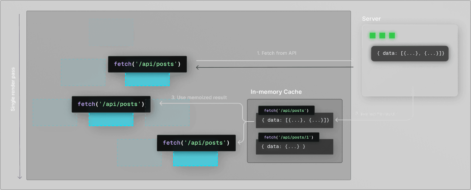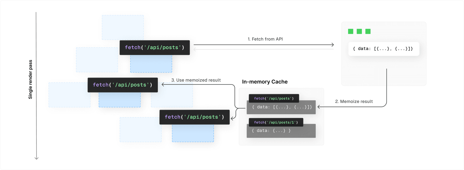 fetchPost(1) // Called within same render pass: returns memoized result.