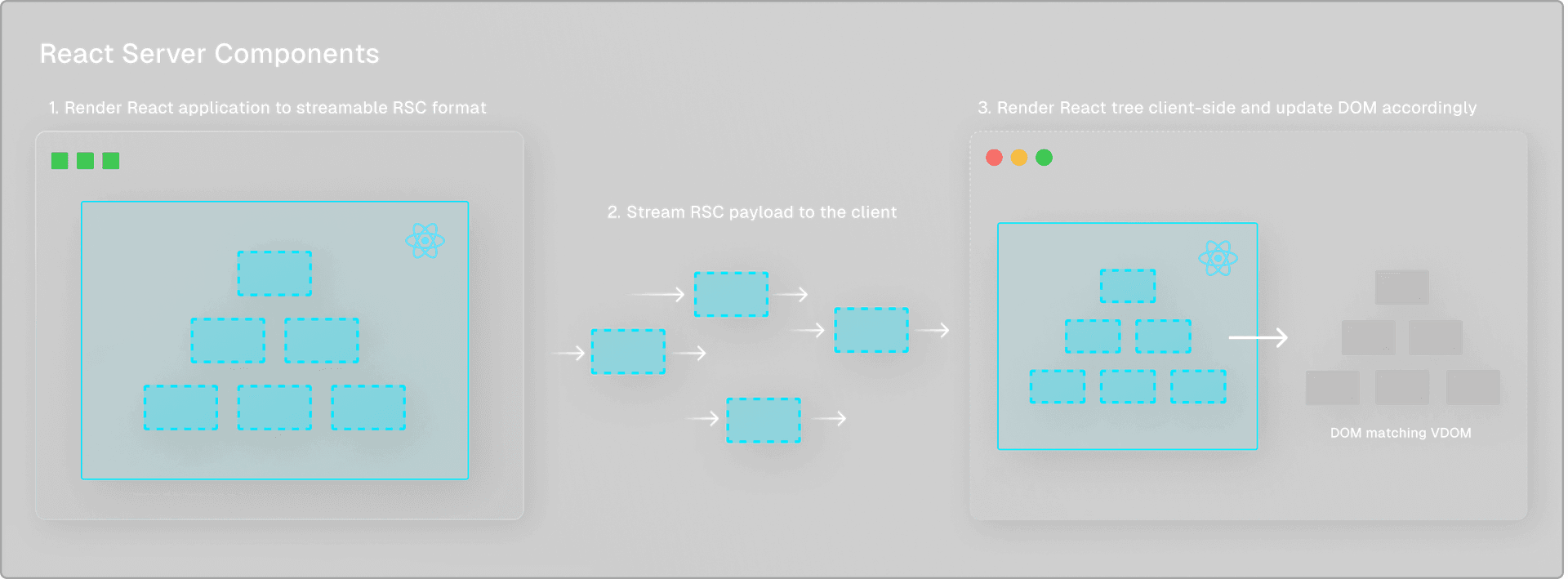 • React Server Components lets developers build components that work on both the server and client, combining the interactivity of client-side apps with the performance of traditional server rendering without the cost of hydration.