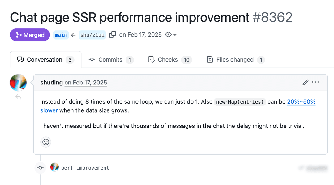 A chat page was scanning the same list of messages eight separate times. We combined it into a single pass, which adds up when you have thousands of messages.