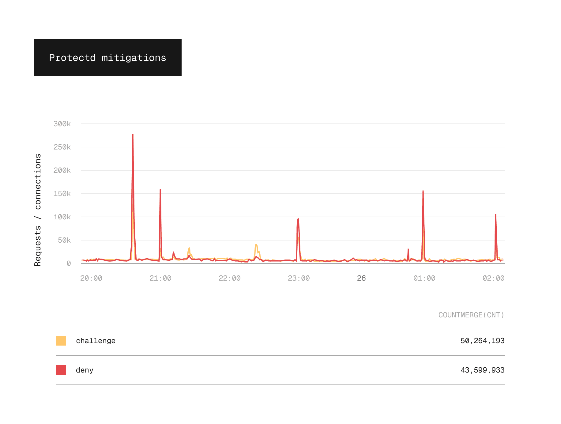 Now, we’re introducing Protectd, our next-generation real-time security engine. Running across all deployments, Protectd reduces mitigation times for novel DoS attacks by over tenfold, delivering faster, more adaptive protection against emerging threats.
