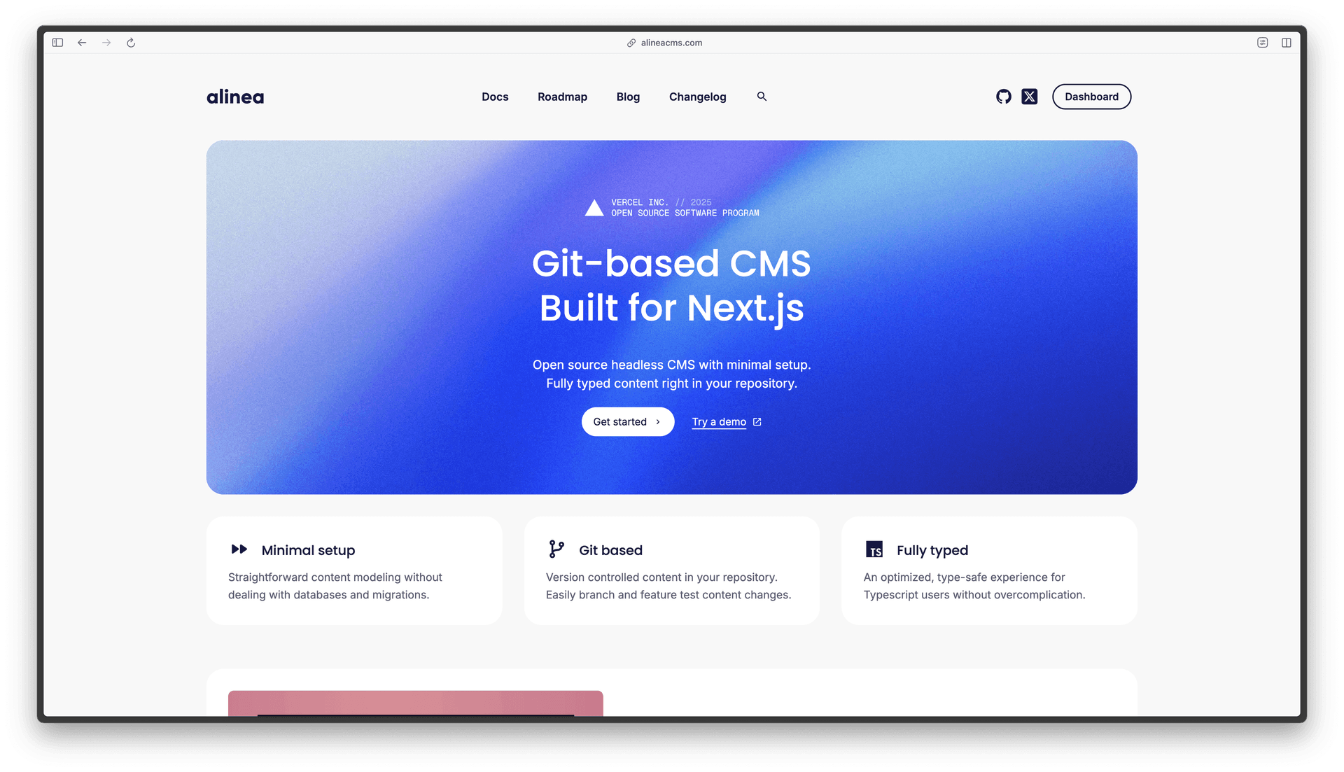 A Git-based CMS built for Next.js. Clean, modern, and great for developers who want structured content without extra tooling.