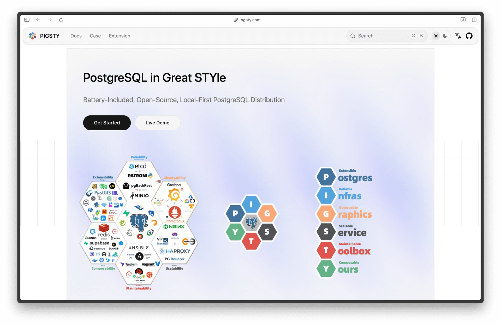 Pigsty is an open source, local-first PostgreSQL distribution. And a rising alternative to managed databases with 4k+ GitHub stars.