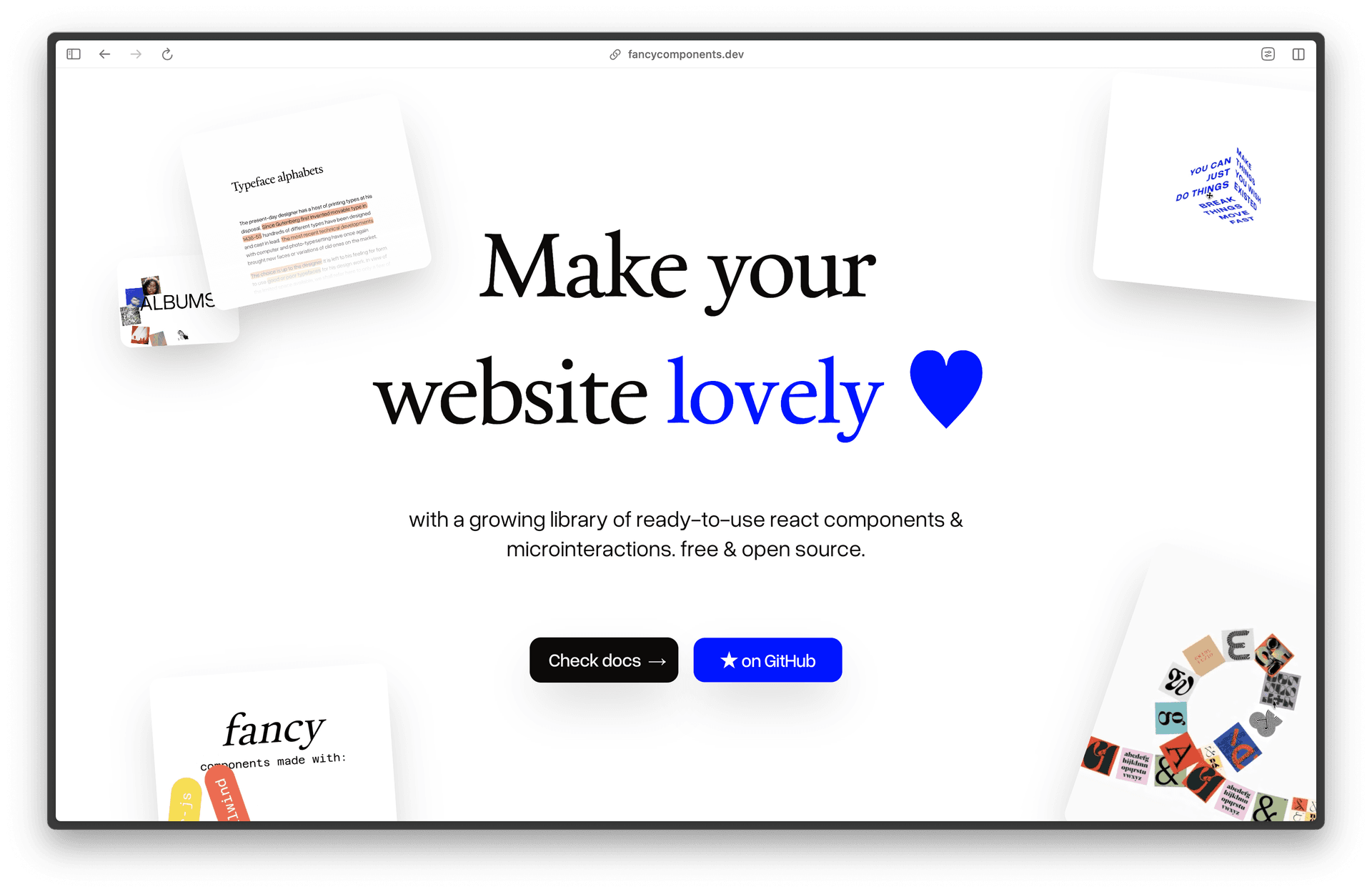 Polished UI components with extra flair. A fun library to spice up your design system with 2.1k GitHub stars supporting it so far.