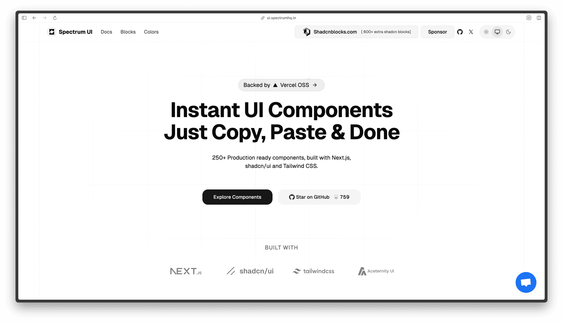 Instantly copy-pasteable UI components for your projects. Has nearly 1k stars on GitHub.