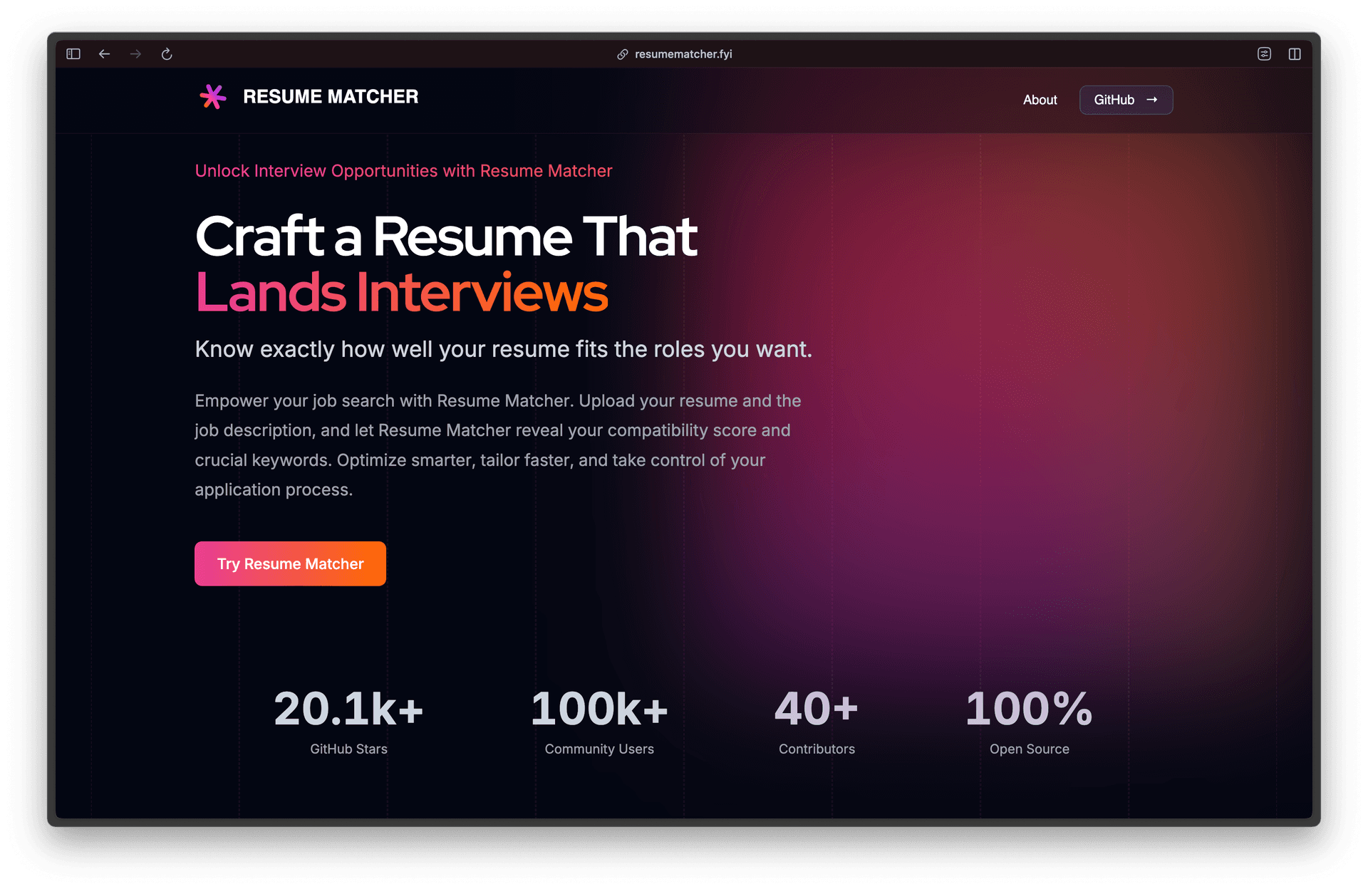 An open source project that tailors your job search to fit your skillset, with over 20k GitHub stars.
