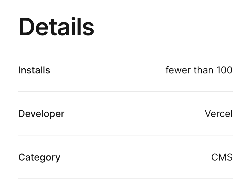 They are displayed in the Details section of the Marketplace integration page that Vercel users view before they install the integration.