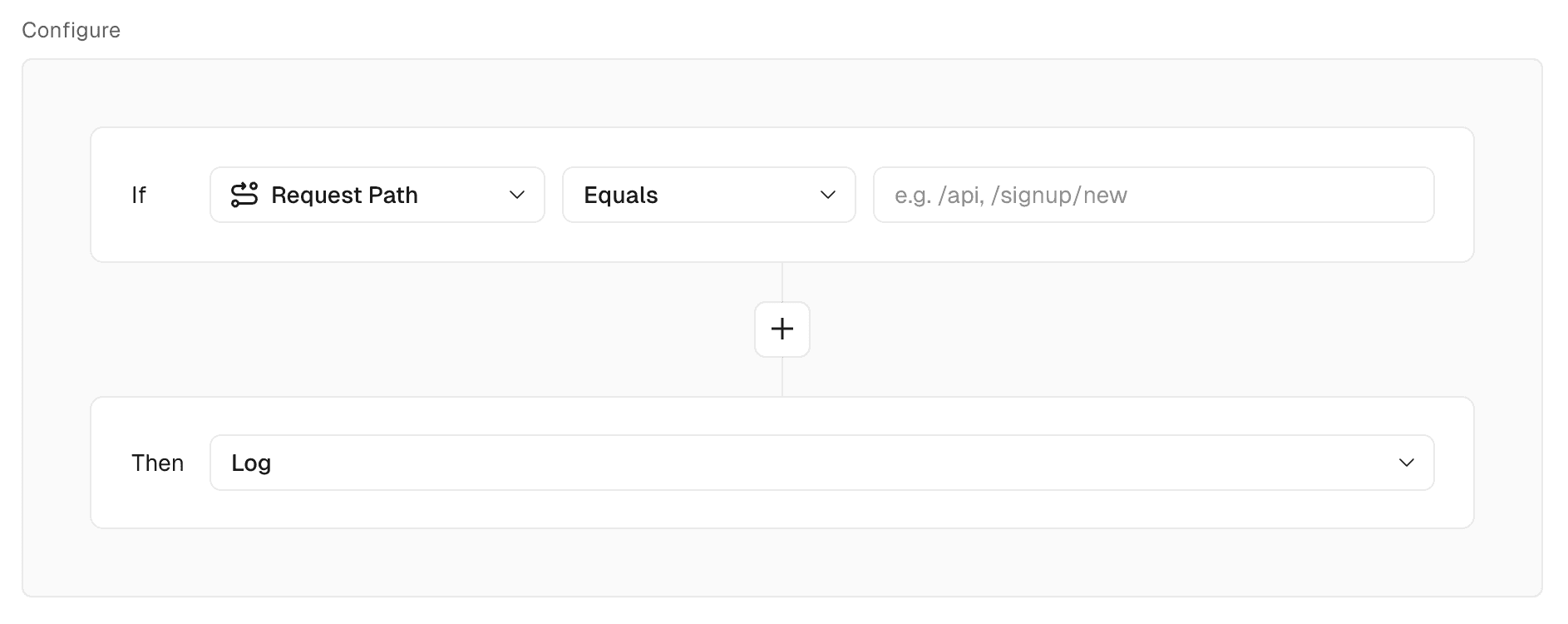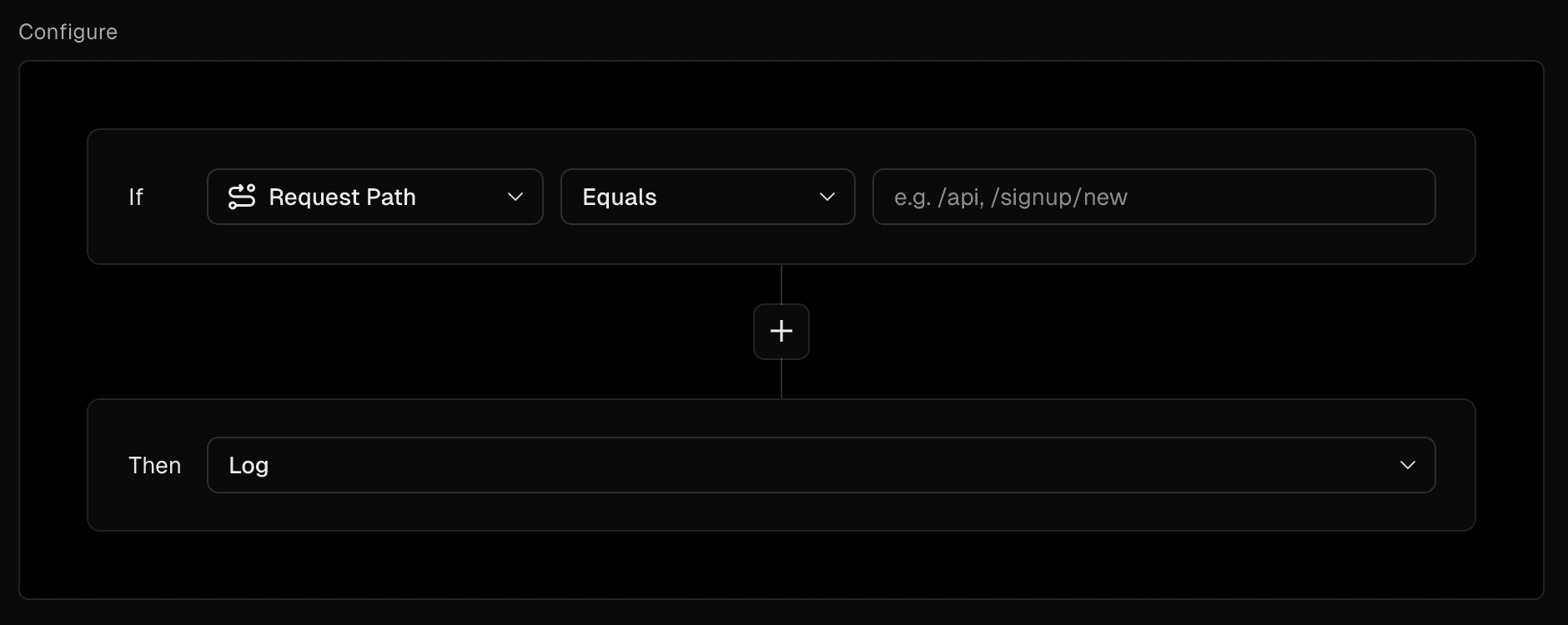 7. For the Then action, you can leave the Default (429) action or choose between Log, Deny and Challenge