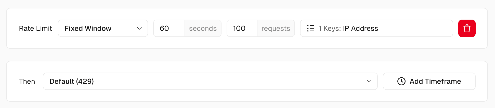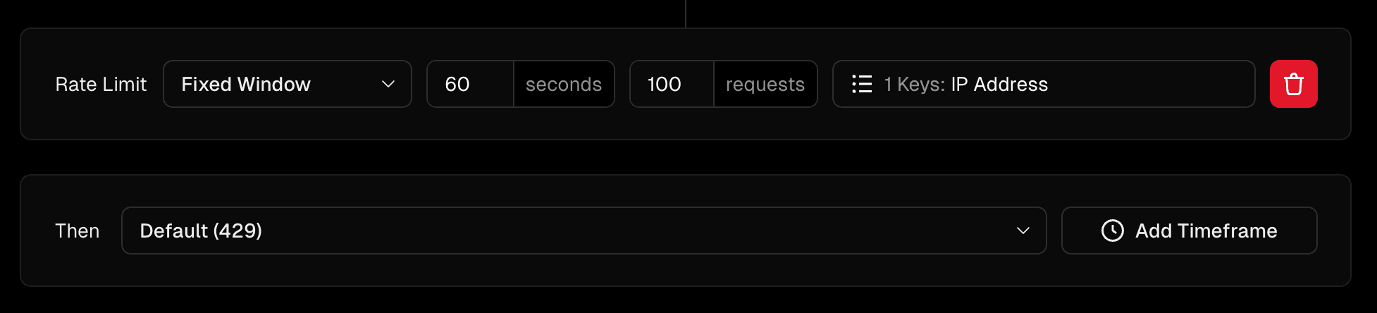 5. Update the Time Window field as needed (defaults to 60s) and the Request Limit field as needed (defaults to 100 requests)