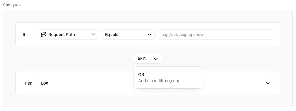 3. Update the Custom Rule condition if needed. Once you're happy with the behavior, update the rule with a challenge, deny, or bypass, or rate limit action