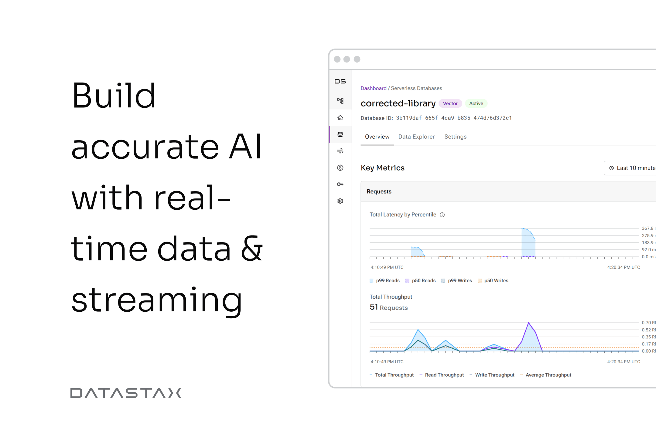 DataStax Astra DB gives you a comprehensive data API for both vector data and other common data types, and the ecosystem integrations for you to build production GenAI applications.