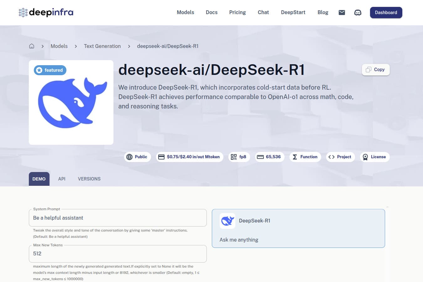 Deep Infra is a platform that provides scalable and cost-effective infrastructure for deploying and managing machine learning models, particularly large language models (LLMs) and other AI workloads. It aims to simplify the process of serving AI models at scale by offering optimized infrastructure, reducing latency, and lowering costs compared to traditional cloud providers.