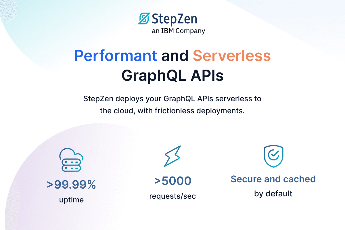 As your project grows, you can also use StepZen to combine different data sources all in one GraphQL API. This way you can combine Databases, SaaS and Third-Party APIs without having to maintain your own servers.
